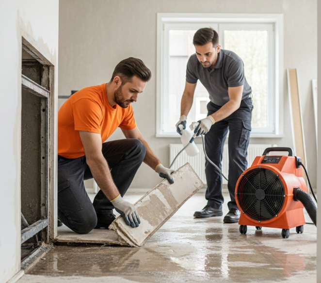 - Water extraction from floors, cabinetry, and walls
